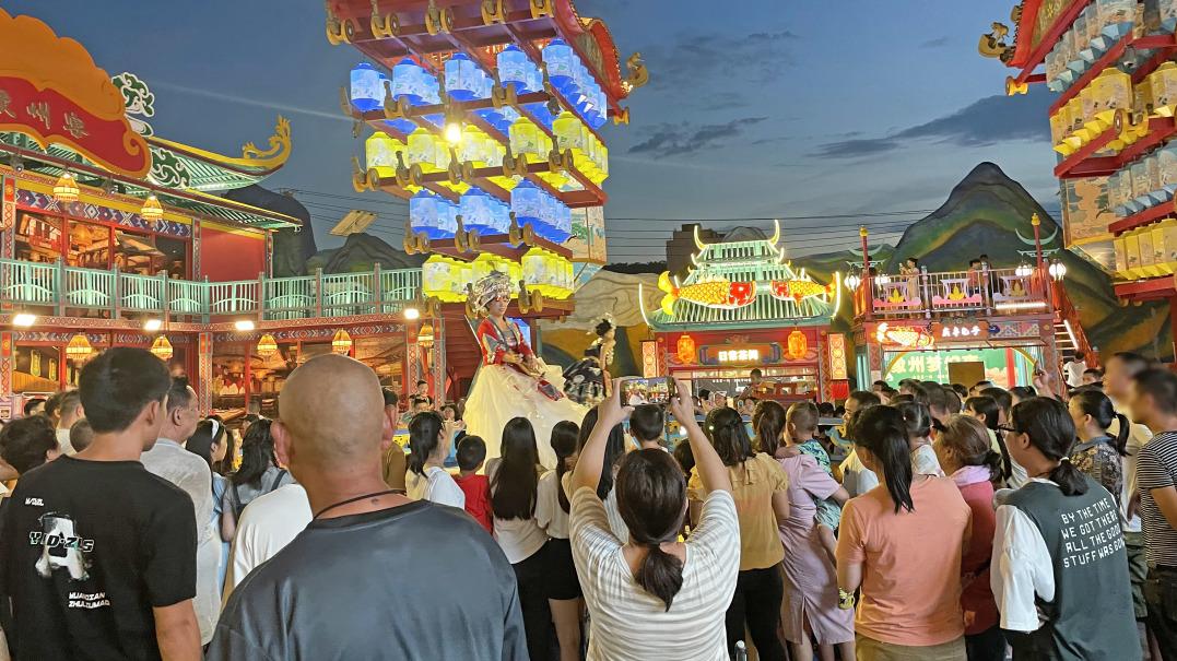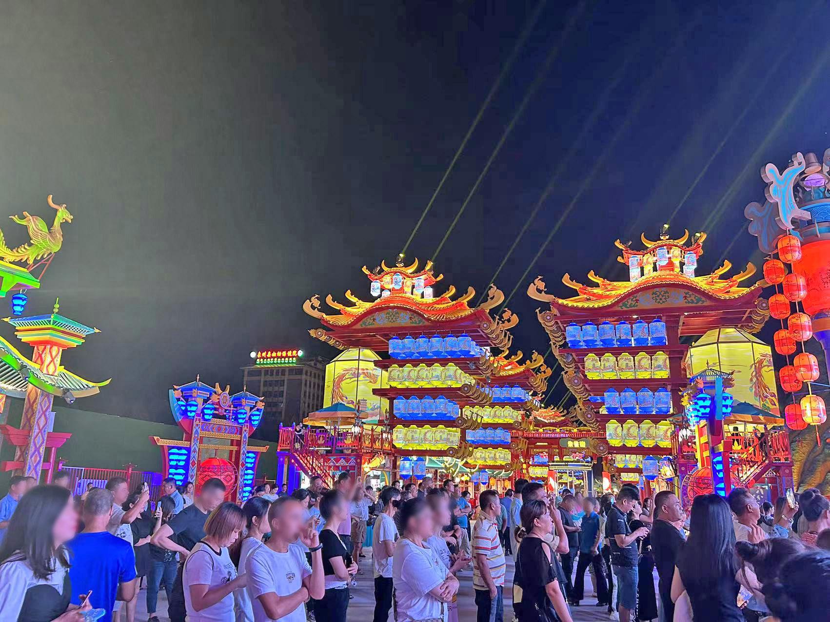 例如,位于广西壮族自治区来宾市象州县的象州梦幻夜,占地面积3.2万平方米,由象州县汇通国有资产运营管理有限公司与锦上添花文旅集团联合打造。其以国潮·科技·展演·多元·梦幻为设计理念,打造出全国首个国风科技文旅街区。