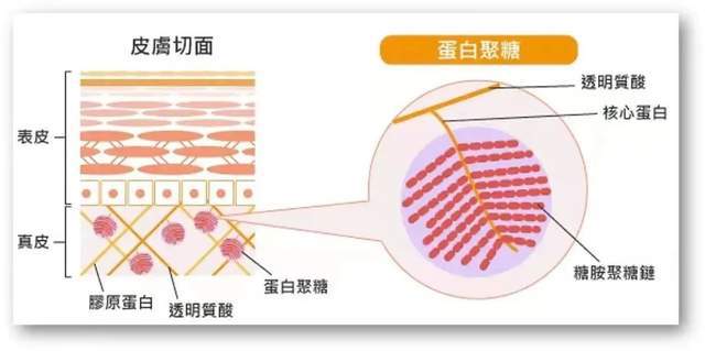 我们皮肤的细胞外基质中含有一种叫GAGs(葡萄糖胺聚糖)的物质,这种糖胺聚糖会形成网状结构,防止皮肤水分流失,链接皮肤中的各个组织,维持皮肤的弹性和紧致。