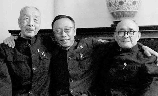 1961年,鹿钟麟(左)、溥仪(中)和打响武昌起义第一枪的熊秉坤(右