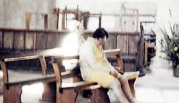 这张照片拍摄于1975年,当时黛安和彼得·贝尔特洛带着12岁的儿子参观了诺福克北部的沃斯特德教堂,彼得拍下了他妻子坐在教堂长椅上祈祷的照片,直到他们回家后,他们才注意到一个神秘的身影,似乎穿着老式的衣服,戴着一顶帽子,坐在妻子的后面。