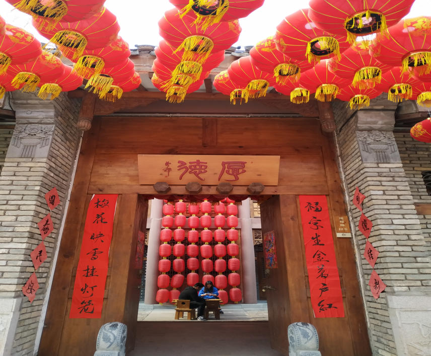 顺水沿谷前行,到达古镇广场,两层高的仿古建筑配上中国红的大红灯笼显得很热闹,灰砖灰瓦建筑为红崖书院,是南开大学的国学大师亲自主持的国学研学基地,国学讲堂常年授课,成为万千学子体验国学经典的地方。红崖书院对面便是表演台,正赶上民俗表演,演员口吞汽油吐火,离得太近,还差点烧到我,最后满脸的汽油味道,演出太精彩,都忘了中午了。广场两侧便是各式小吃,服务人员也会是很热情的招呼着大家来就餐。