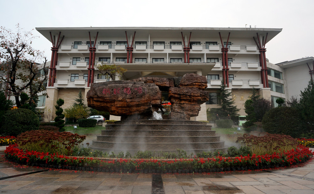 玩累了就回温塘镇上了,直奔白鹿温泉而去,十几分钟山路一会就到,酒店位置很好找,一道门口特别的气派,然后到酒店前台办理入住和温泉门票稍作休息。