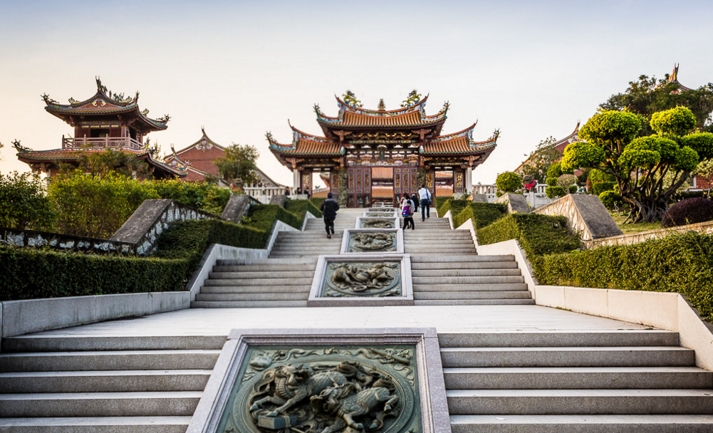澳门天后宫,2003年10月4日刚刚落成,历时2年半,耗资2亿澳门元。它坐落在澳门路环岛的叠石塘山上,占地近7000平方米,是澳门迄今规模最大的庙宇。
