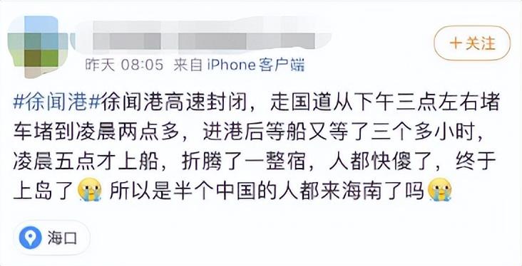 今天在社交平台上,不少人都像陈先生一样,堵在了去徐闻港口的路上。